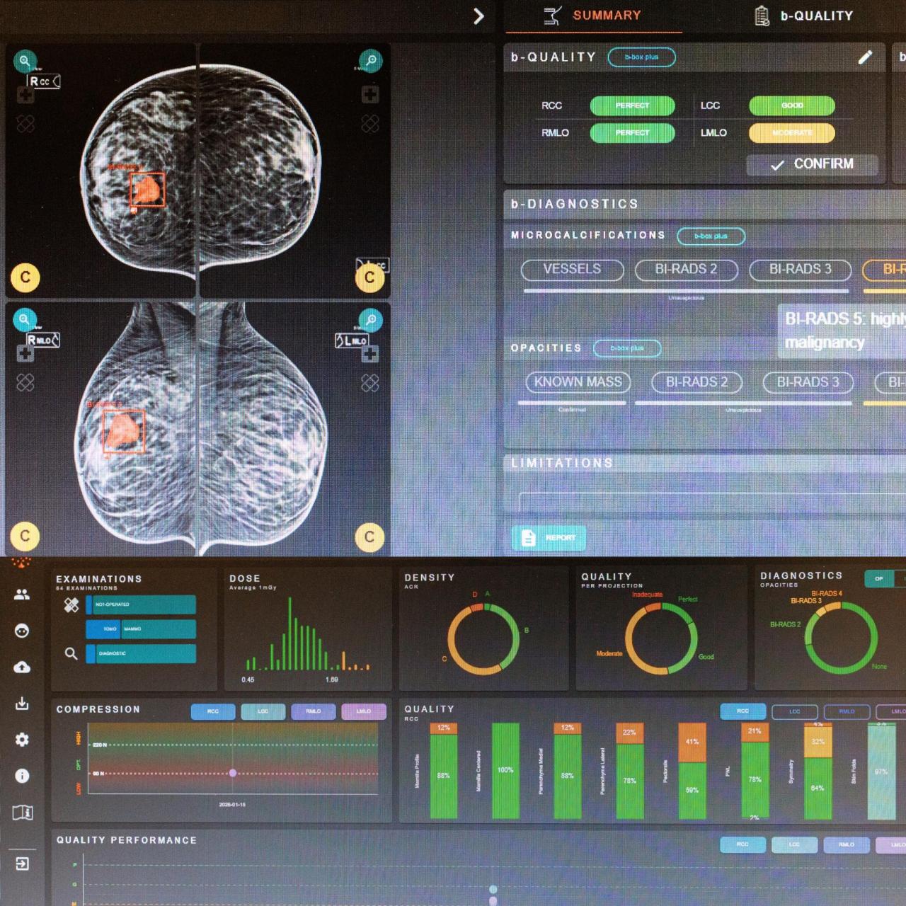 Il nuovo sistema intelligente, che utilizza standard di riferimento internazionali per la valutazione della qualità clinico-tecnica dell’immagine mammografica, supporta i medici e i tecnici radiologi fin dalla modalità di esecuzione dell’esame stesso, dando feedback immediati sul miglior posizionamento del seno sul macchinario. Questo si traduce in una maggior qualità delle immagini acquisite, che consente di avere esami di alto livello, secondo gli standard europei, agevolando il lavoro di refertazione del medico radiologo.